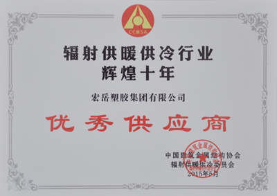 2015年5月15日,中国辐射供暖供冷委员会十周年庆典在北京盛大举行。会上表彰了一批对辐射供暖供冷行业发展作出突出贡献的企业和个人,安博官方网页版喜获中国辐射供暖供冷行业辉煌十年优秀供应商殊荣,安博官方网页版塑胶集团有限公司张思良总经理荣获中国辐射供暖供冷行业功勋奖。