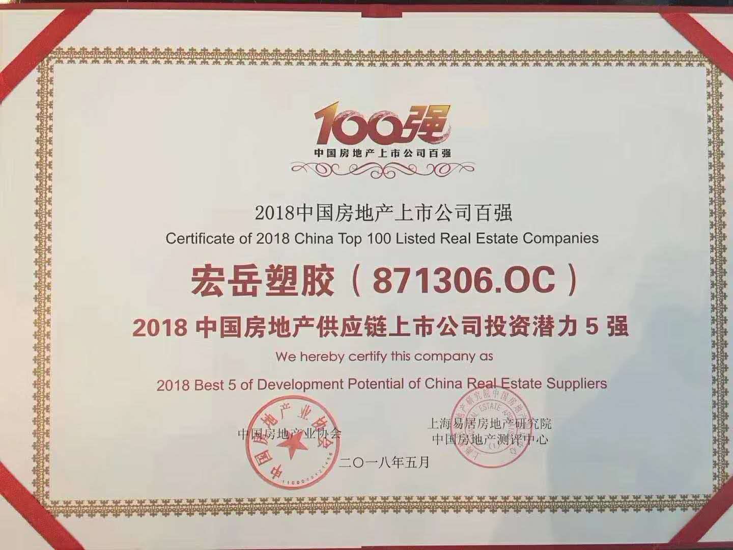由中国房地产业协会、上海易居房地产研究院中国房地产测评中心联合开展的“2018中国房地产上市公司测评成果发布会暨金融创新高峰论坛”在深圳举行,安博官方网页版荣获“2018中国房地产供应链上市公司投资潜力5强”。