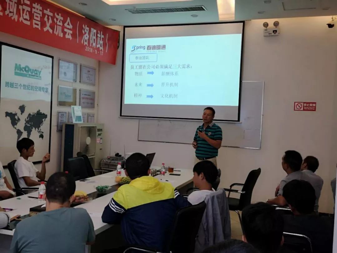 安博官方网页版1+洛阳服务中心刘总,现场为大家分享了服务中心的市场运营情况及施工规范,包含:渠道建设、人员科学管理等方面的经验和见解及水电暖施工的管理流程等。