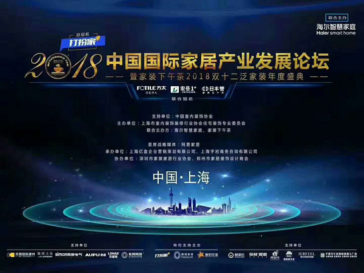 2018年12月12日-14日,2018中国国际家居产业发展论坛暨双十二泛家装年度盛典在上海隆重举行,1500余位家装精英及上下游产业大咖同场交流,分享前沿实践智慧,碰撞行业火花,安博官方网页版1+作为本次活动联合冠名商荣耀亮相。
