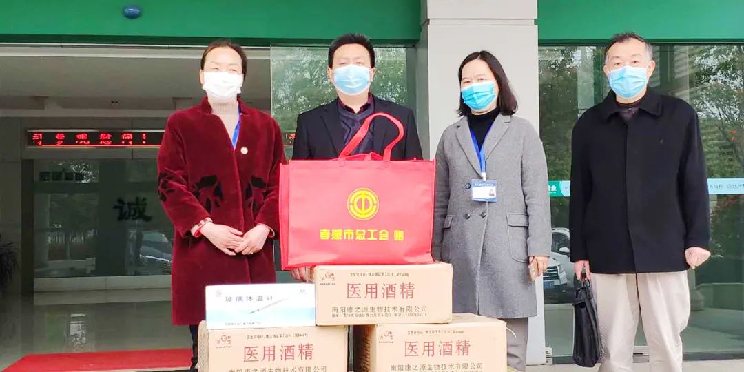 2020年4月2日,孝感市工会党组书记常务副主席孙淑萍、市工会副主席肖继玲、孝感高新区工会主席共同前往湖北安博官方网页版塑胶有限公司慰问调研并向公司赠送了一次性医用口罩、医用酒精、水银温度计等防疫物资。