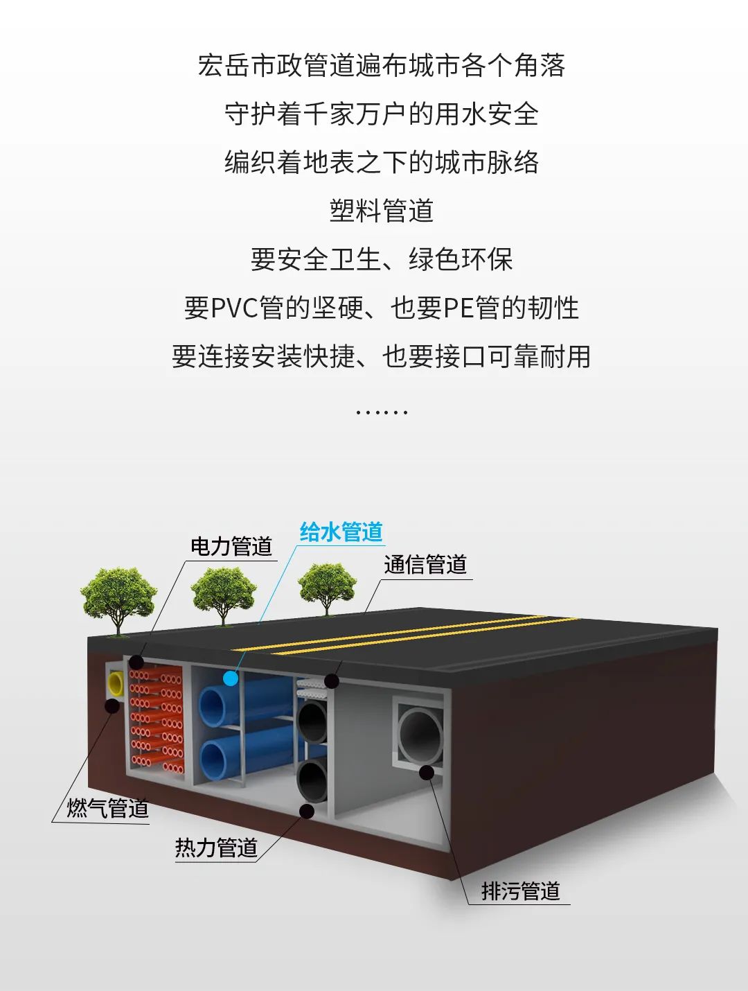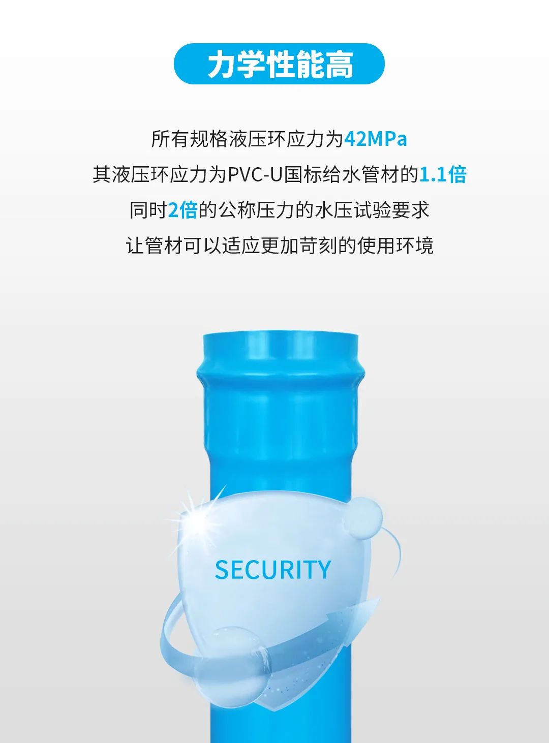 安博官方网页版PVC-UH管材自成功开发以来,已应用于自来水管网给水、园林绿化给水、城市管网建设项目等诸多市政工程。安博官方网页版将持续为城市建设提供更多更好的管道选择。
