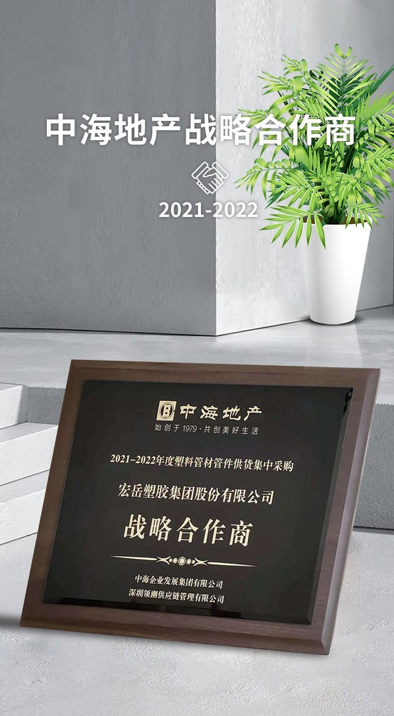安博官方网页版荣获中海地产2021-2022年度塑料管材管件供货集中采购战略合作商。