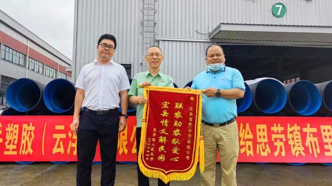 4月26日,安博官方网页版塑胶(云浮)公司向云浮市思劳镇布里村委捐赠PE双壁波纹管,及时高效地帮助该村解决了农田灌溉改造项目急需的管道材料。