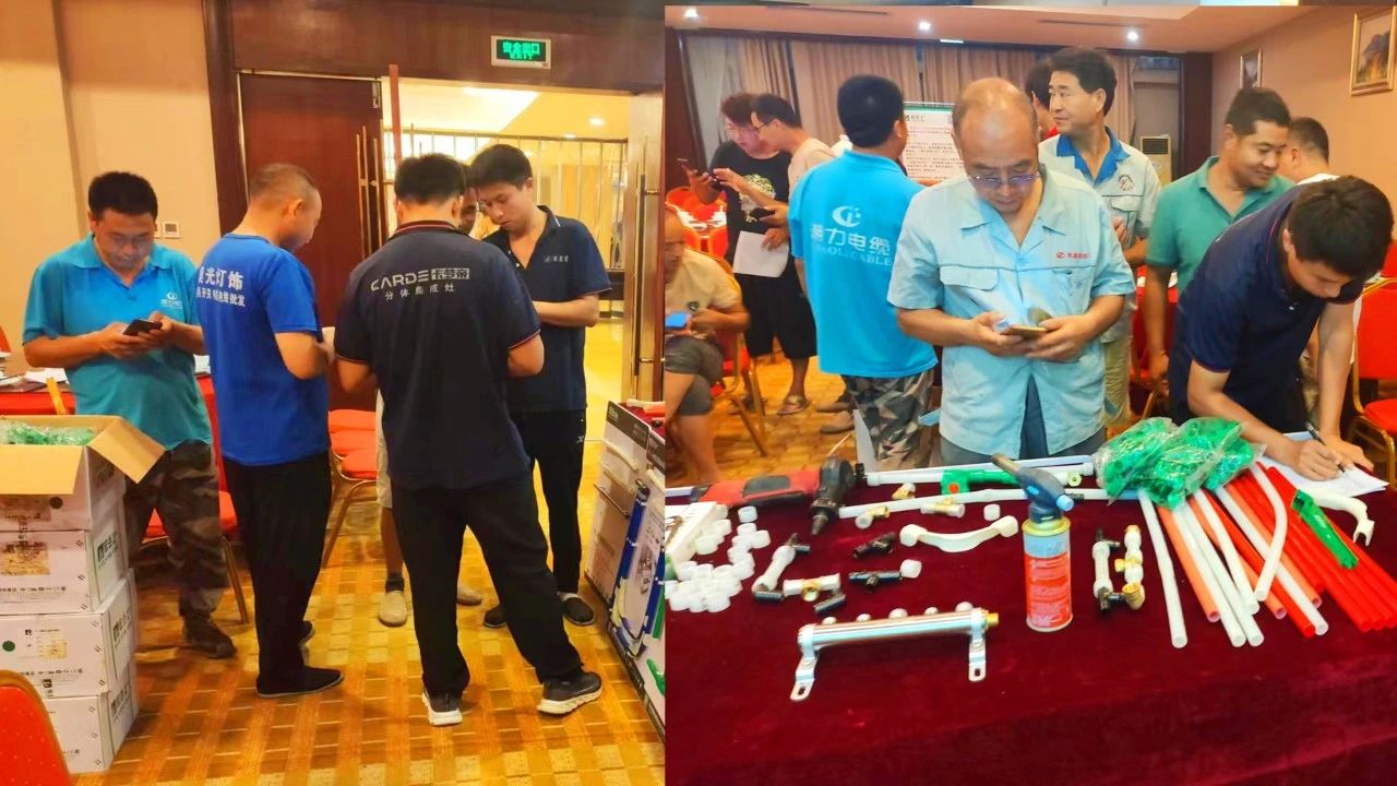 安博官方网页版1+区域运营经理向各位参会者介绍了安博官方网页版塑胶集团概况,并着重讲解了安博官方网页版1+产品体系及PE-Xa快易连接管道系统,凭借其简单、快捷、安全的产品及连接优势,得到了与会水电技师们的高度好评。