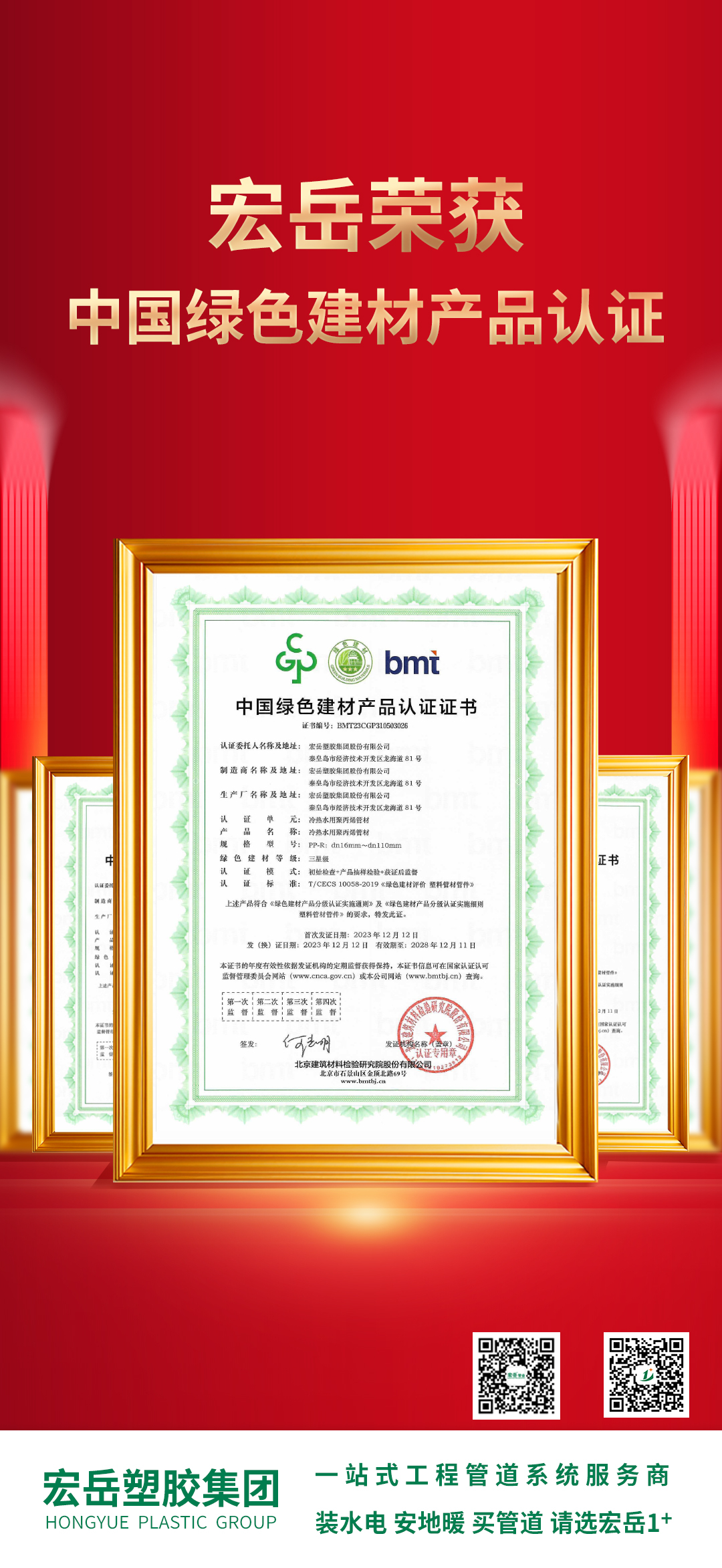安博官方网页版获得中国绿色建材产品认证,本次认证对PPR、PVC、PE、PE-Xa、PE-RT管材管件等11个单元的系列产品,以环保、节能、节水、循环、低碳等评价维度进行了相关审核,安博官方网页版顺利通过。